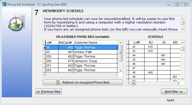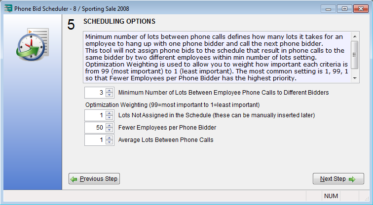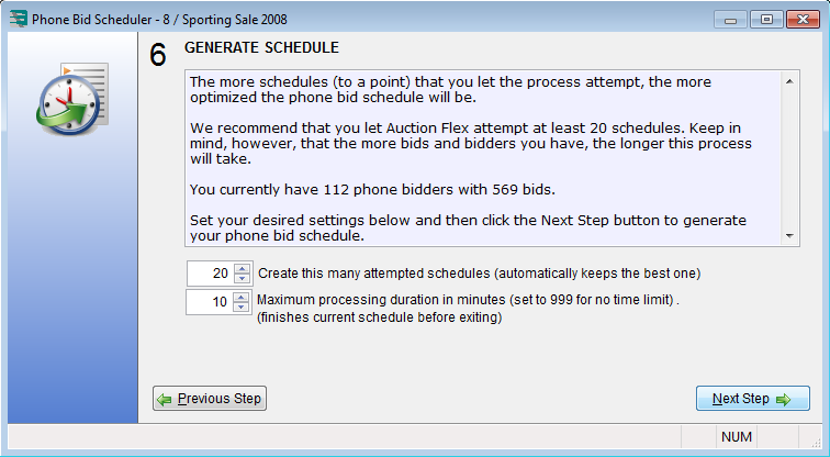 In Auction Flex version 7.10 (released 1/5/2011) the phone bid scheduler algorithm has been significantly improved and now produces an even better, more optimized schedule.